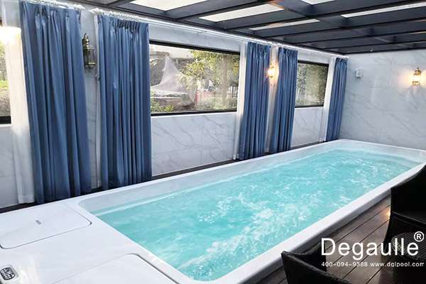 这种整体游泳池是一种成品泳池,放在家庭中使用,不需要很大的空间,占地面积大约只有一张床的大小,可以放置在室内外。虽然泳池不大,但它的游泳功能却非常出色,用层流推进器让泳池的水流动起来,实现不停地游,游泳锻炼效果比普通泳池更高效。
